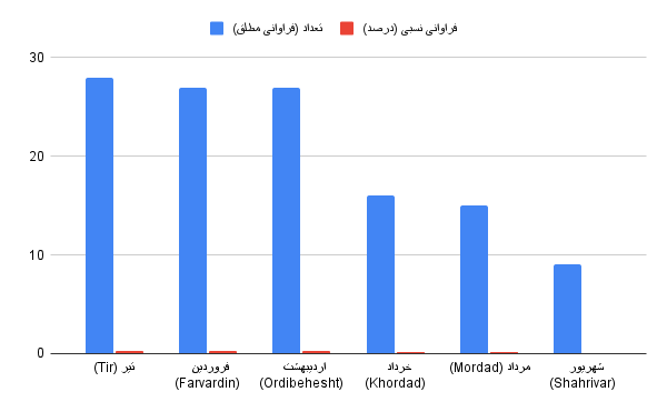 | Tir (تیر) | ۲۸ | ۲۳.۷۳% |